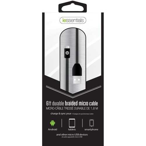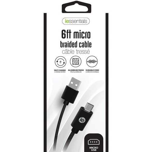 iEssentials IEN-BC6M-BK Charge & Sync Braided Micro USB to USB Cable, 6ft (Black)