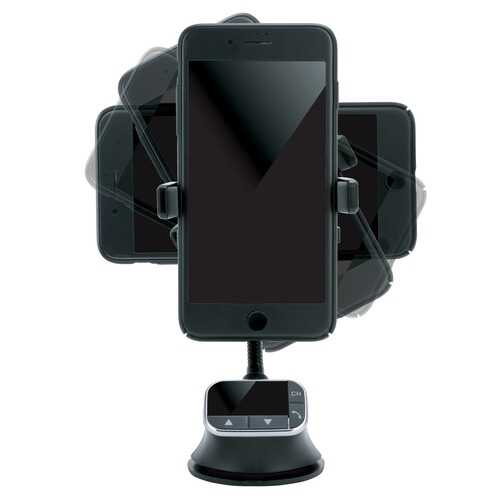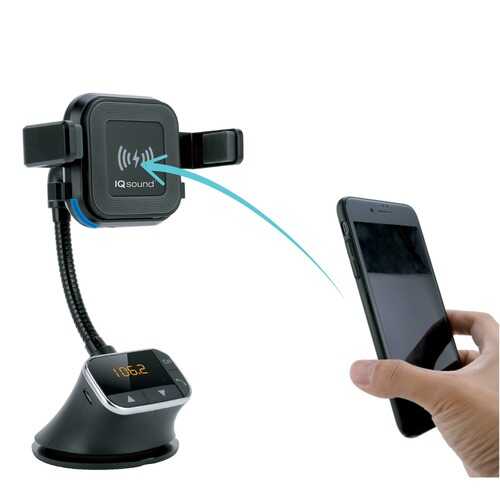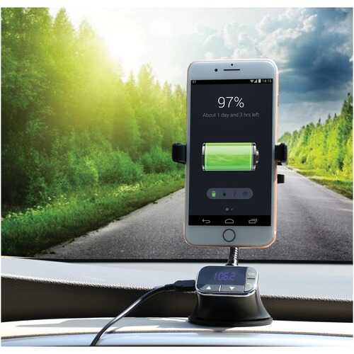 Connects to Bluetooth(R)-enabled devices; Streams music and phone calls via car's FM stereo system ; Qi(R) wireless charging for compatible devices; Switches to hands-free mode automatically when receiving calls ; Flexible neck can be bent and adapted for better viewing ; Adjustable bracket compatible with Apple(R) iPhone(R) X, Apple(R) iPhone(R) 8/8 Plus, Samsung(R) Galaxy Note(R) 5/8/S8/S8+/S6 Edge and other wireless enabled devices ; 4.2 Bluetooth(R) V4.2; Built-in display ; Built-in FM transmitter range: 87.5 MHz to 108 MHz ; Powered by cigarette lighter in the car: 12 volts to 24 volts ; Wireless charging output: 10 watts maximum ; USB output: 2.4 amps ; Maximum width for phone: 3.46 in. ; 2 LED indicators for charging status ; Includes manual;