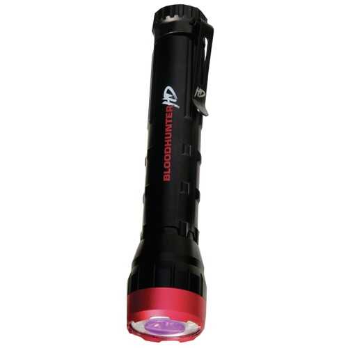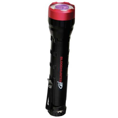 State-of-the-art blood tracking technology driven by combination of proprietary filter and ultra-bright LEDs; 250 lumens; Makes blood visible in all types of terrain; Rugged, machined aluminum body; 2 modes--blood tracking and low illumination white light for hiking; Compact design fits in nearly any pocket; Includes batteries;