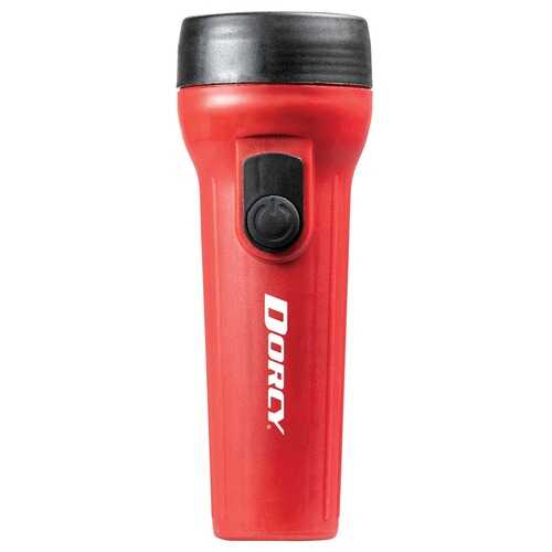 60 lumens; 325 ft. beam distance; Super-bright LED; High-impact, durable plastic construction; Weather-resistant; Up to 50 hours of run time; Includes 2 flashlights and 2 D batteries;