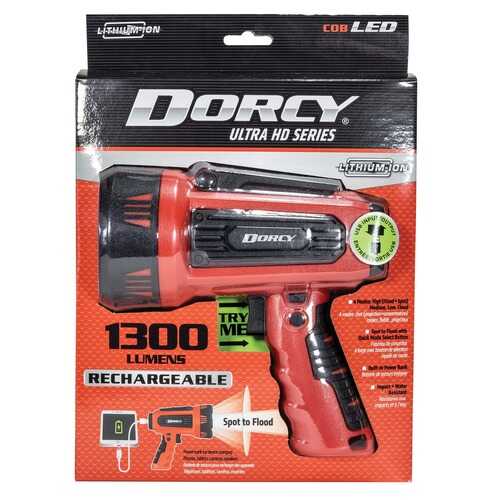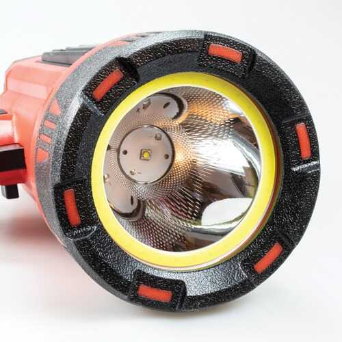 Recharges via USB; Power bank capabilities charge other devices; 1,300 lumens with up to 6 hour run time; 200 lumens with up to 14 hour run time on low ; 4 settings: high, medium low, and flood (COB); Locking trigger with quick mode select button; Fold out stand;