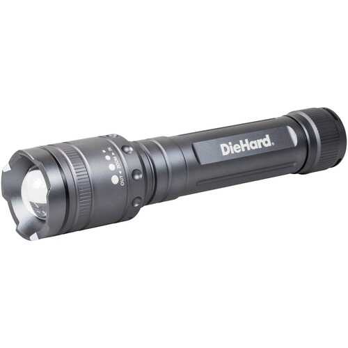 2,400 lumens;   984ft beam distance;   Aluminum construction;   Precision flood-to-spot twist focusing;   3 power modes--high/medium/low;   Up to 3 hours of run time on high;   Impact- & water-resistant;   Includes 9 AA batteries;