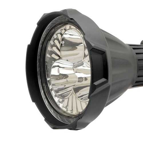 4,000 lumens; Super bright 3 CREE(R) XHP50.2 50 watt LEDs; Tri-mode illumination: high/low/SOS; Powered by rechargeable Lithium batteries; Auto brightness reduction after 5 minutes; Floatable housing; Shatterproof aluminum head; PC tail cap glows in the dark; Includes dual function DC 12 volt to 24 volt car charger/adapter with heavy-gauge 10 ft. coil cord, 47 in. micro USB cord, and manual;