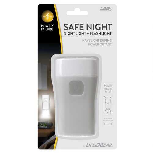 2-in-1 night light and flashlight plugs into AC outlet; Automatic dusk till dawn night light; Automatically comes on when power goes out; Rechargeable Li-Ion battery; Powerful emergency flashlight with extended run time;