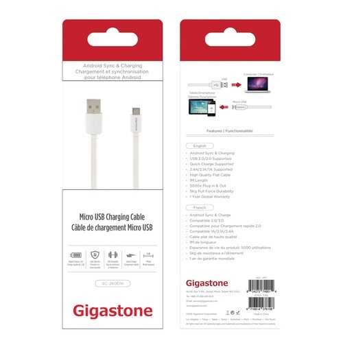 Gigastone GC-2600W-R Charge & Sync Micro USB to USB Cable, 3.3ft
