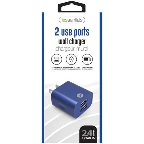 iEssentials IEN-AC22A-BL 2.4-Amp Dual USB Wall Charger (Blue)