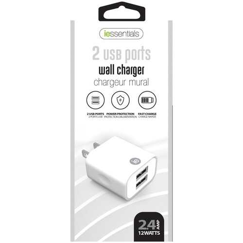 iEssentials IEN-AC22A-WT 2.4-Amp Dual USB Wall Charger (White)