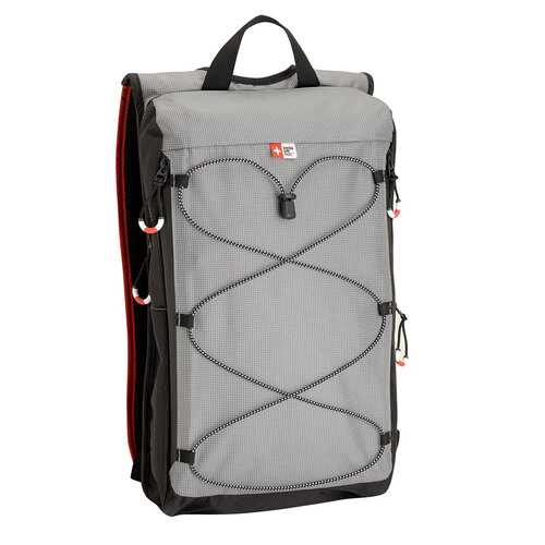 Durable patterned nylon with red mesh accents, waterproof zippers, Swiss life logo lining, signature Swiss life woven logo tab Swiss life matterhorn collection small hiking backpack features a zip-around closure, phone pocket on shoulder strap, exterior slip pockets and bungee rope holder.