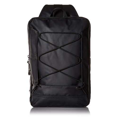 Matte waterproof polyester with elastic rope accents and waterproof zippers, nylon webbing trim, nylon lining and satin nickel hardware expedition thorn sling backpack features and exterior bungee cord, interior utility and pocket, padded electronics pocket, dual zip compartments, breathable air-mesh padded rear exterior, top carry handle, adjustable sling shoulder strap.